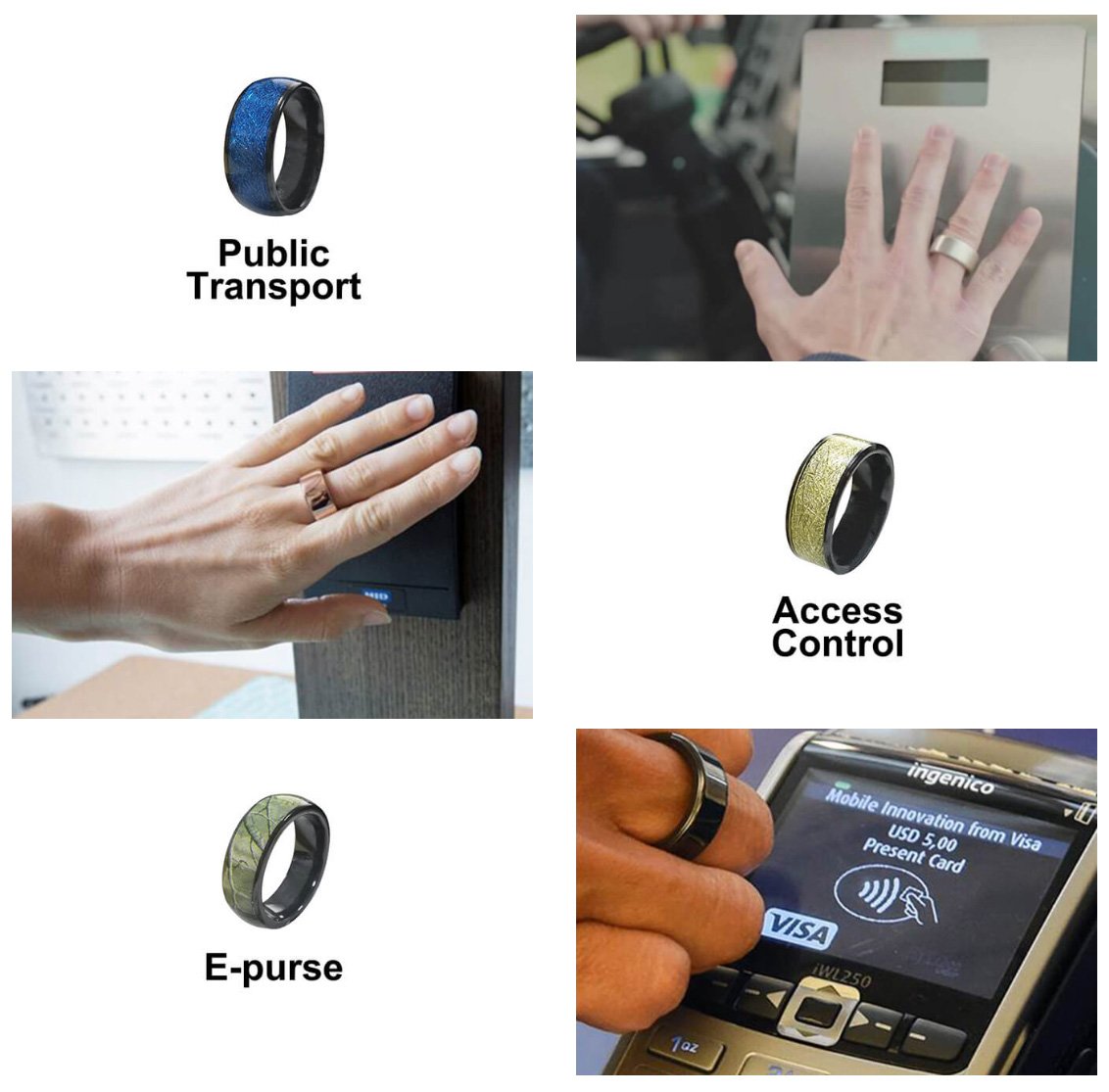 NFC ring is a wearable product that integrates fashion, personalization, intelligence, and NFC functions. According to the chip function, it can be applied to access control, social business cards, car keys, bus ticket cards, and even used with financial chips for non-contact small payments in banks.