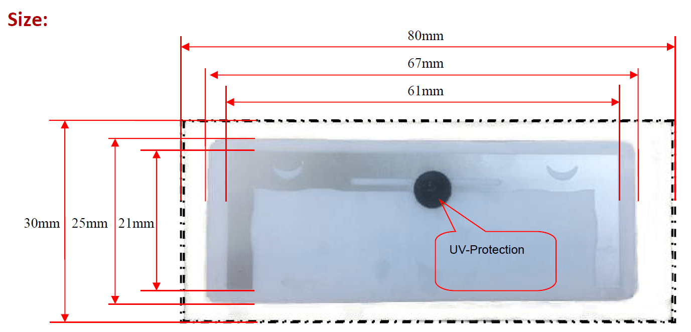 DimensionL67*W25*T≤0.25mm(Thickness ≤0.38mm on chip location)