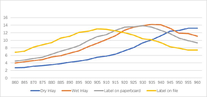Label reading distance depends on Inlay design, Reader’s power & performance and related application scenario.