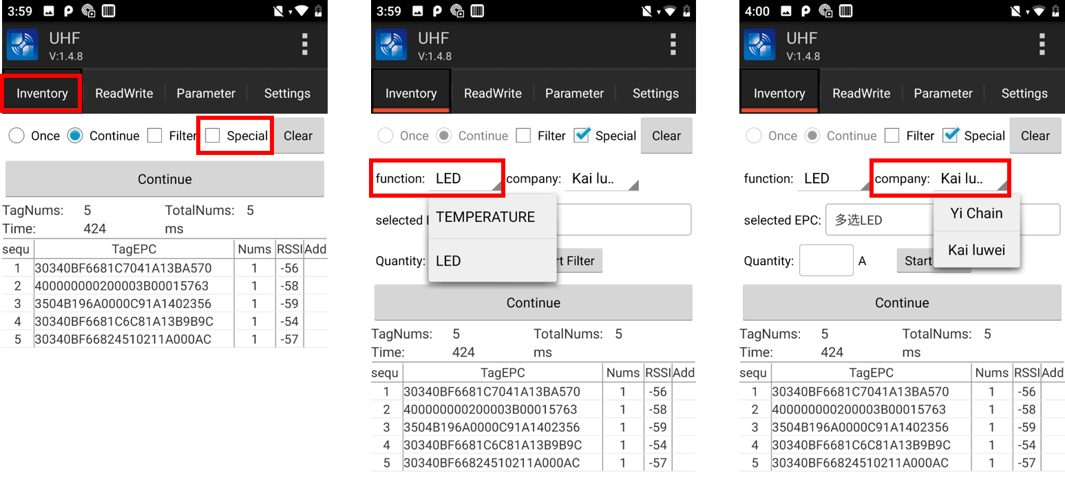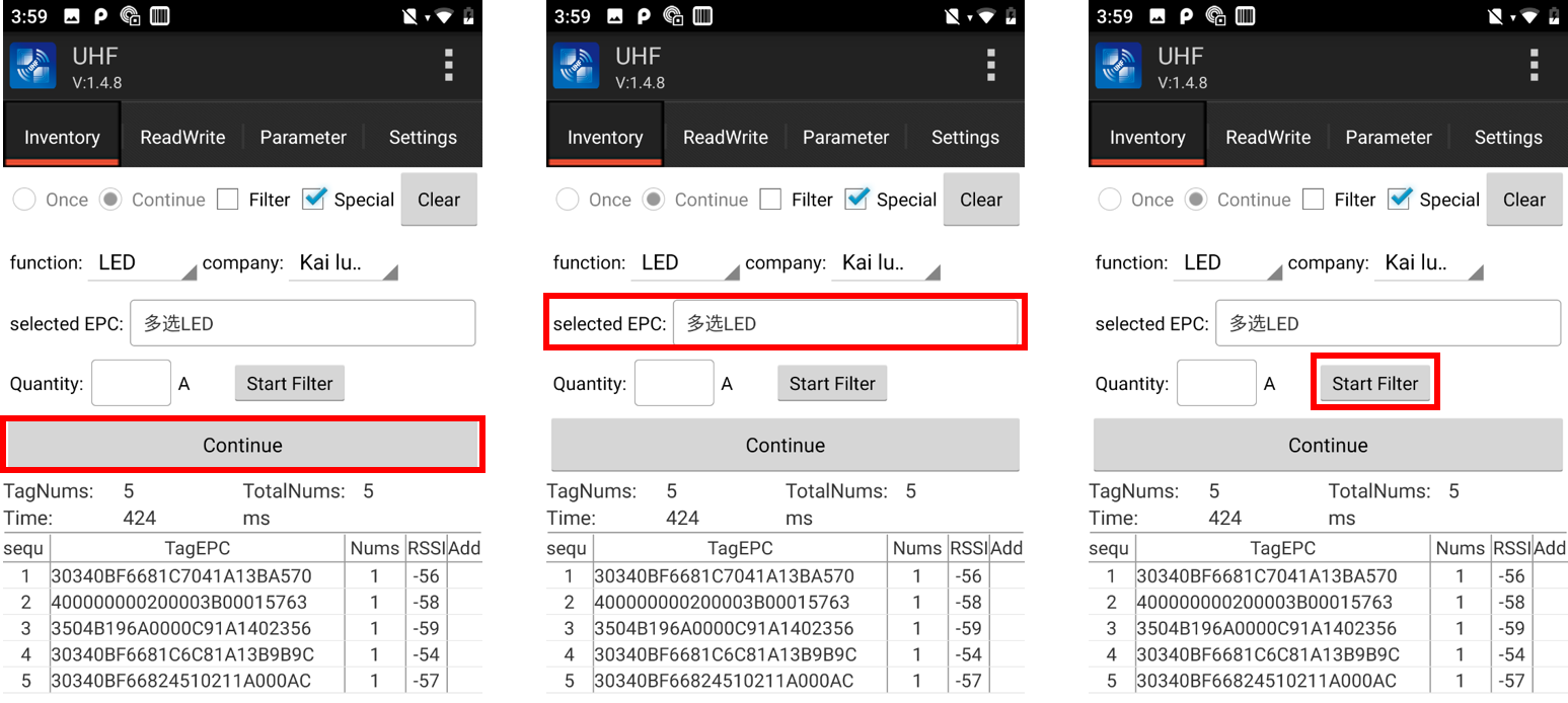 2.Select EPC code of target label in “Selected EPC” list (multiple choice)